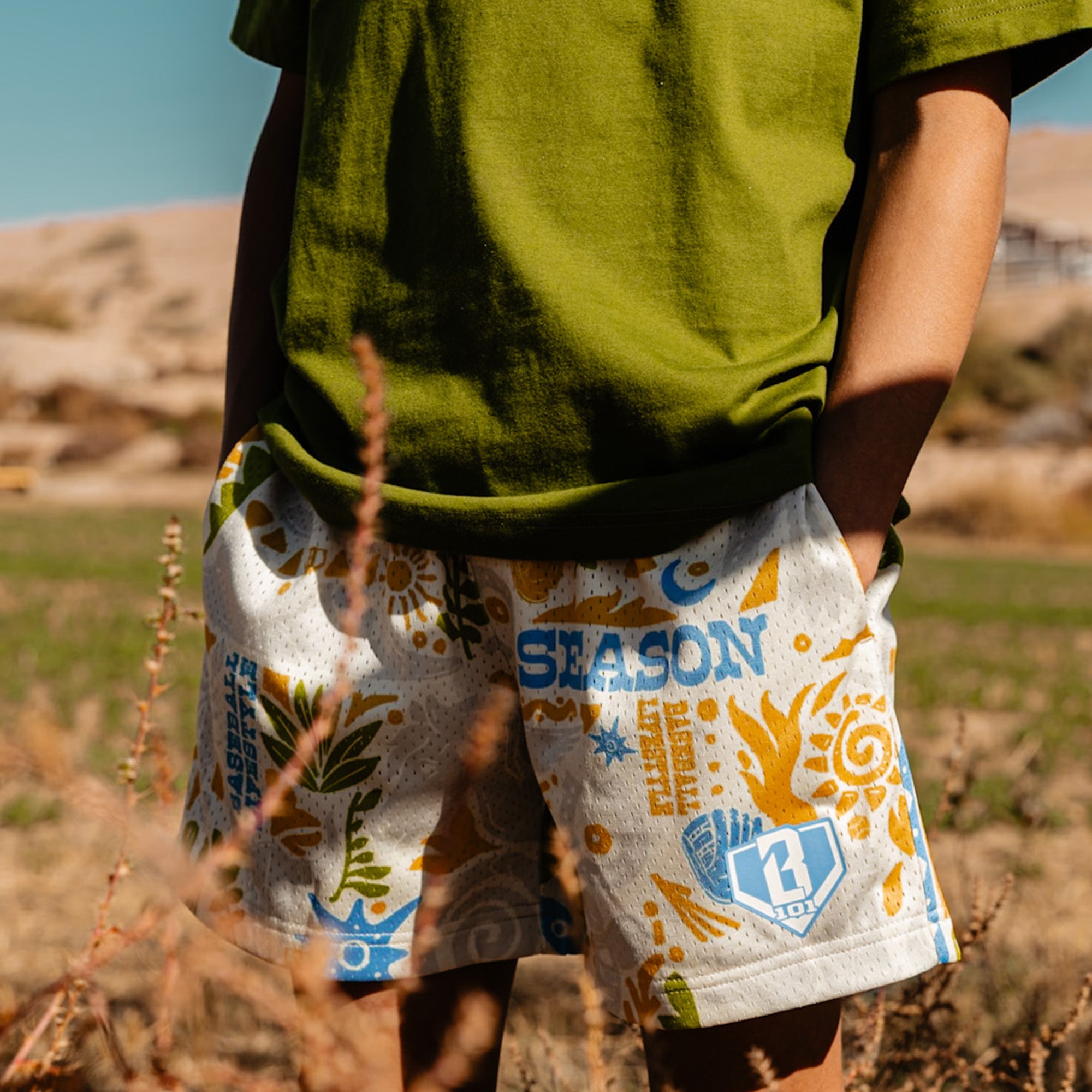 Desert vibes meet baseball grind. The BL101 Cactus Curve Shorts are for the players who stay locked in year-round. Rock them to morning workouts, bullpen sessions, agility drills, or downtime between reps. When everyone else is taking it easy, you’re still putting in work. Offseason champions become regular season legends Mesh shorts Allover pattern Side pockets Drawstrings at the inner waistband Elastic Trim 100% Polyester 5″ in-seam length