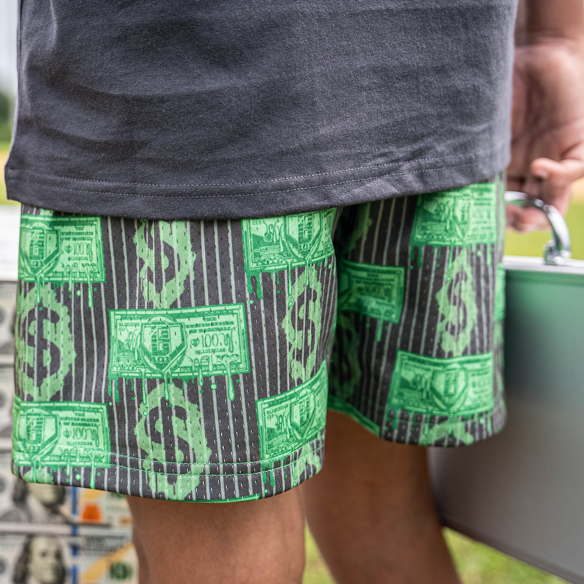 Step up to the plate and chase the bag with the new Rich Drip Shorts from Baseball Lifestyle 101, built for players who know every hustle counts. Featuring an all-over money-print design with dollar drip details, these shorts are big-league energy on and off the diamond. Lightweight, breathable fabric keeps you cool whether you’re stealing bases or stacking cash. With pockets for your essentials and a design that turns heads, these are a true home-run fit for the bag chasers. Stack your wins, wear your grind. Mesh shorts Allover pattern Side pockets Drawstrings at the inner waistband Elastic Trim 100% Polyester